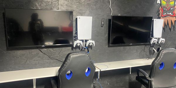The Gaming Zone stations each have a gaming console connected with its own set of controllers. There are currently two PlayStation 5's and two Xbox Series X.